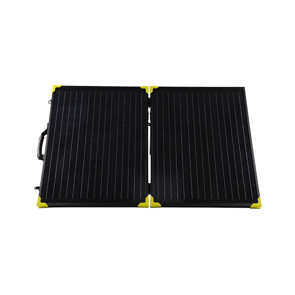 1. 100 W zložljiva solarna plošča za sončno energijo je vtič, pripravljen za uporabo, in deluje kot prenosna solarna rešitev. Preprosto morate zložiti sončno ploščo in obrniti njeno sončno površino neposredno proti soncu.