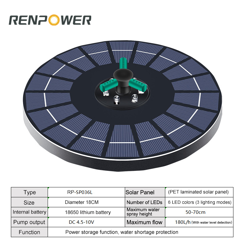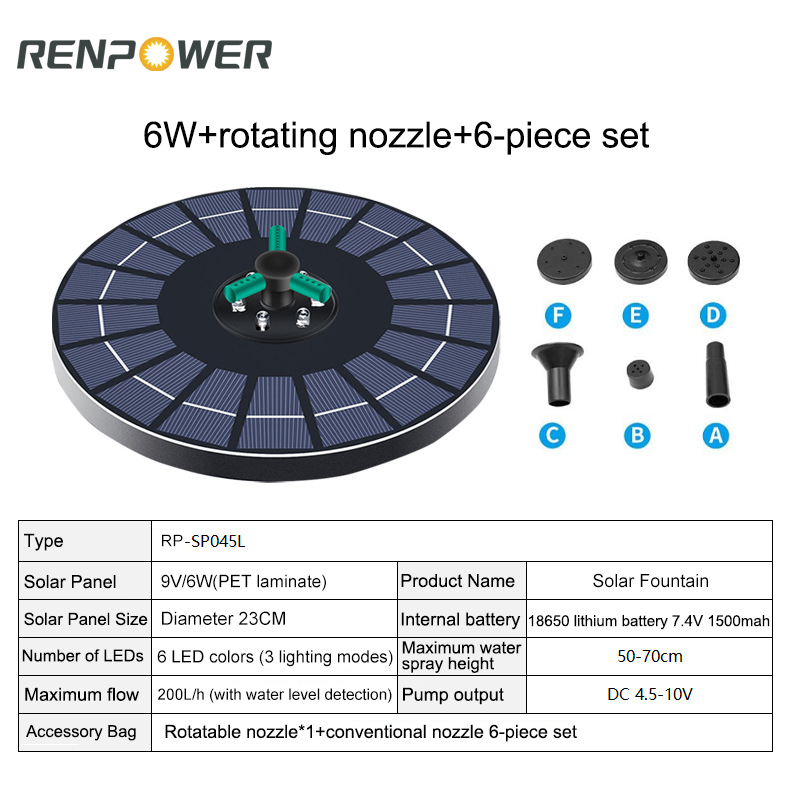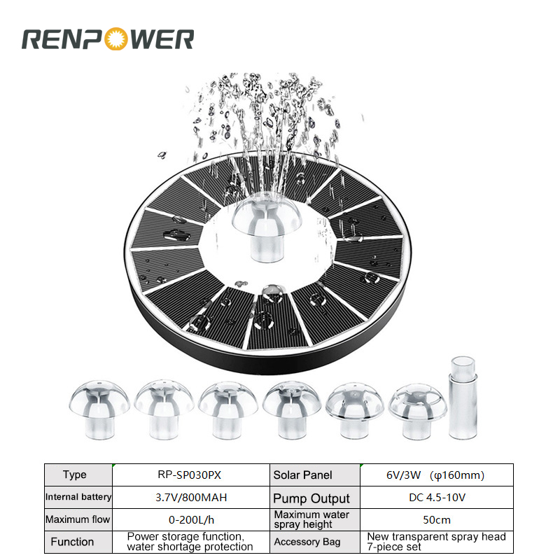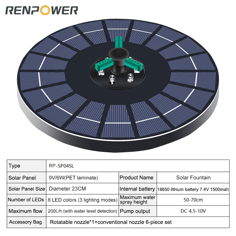 Sončna vodnjak je naprava krajinske vodnjake, ki uporablja sončno energijo za pogon vodne črpalke za črpanje vode. Ta izdelek uporablja visoko učinkovite sončne panele in novo brezkrtalno vodno črpalko, ki ima prednosti hitrega zagona, visoke učinkovitosti in močne stabilnosti. Poleg tega izdelek ne potrebuje zunanjega napajanja. Ni samo enostavno namestiti in upravljati, ampak tudi varen, zanesljiv, varčen z energijo in okolju prijazno. Izdelek se pogosto uporablja na mestih, kot so vodnjaki za bazene, rockerske fontane in kroženje vode za ribje rezervoar.